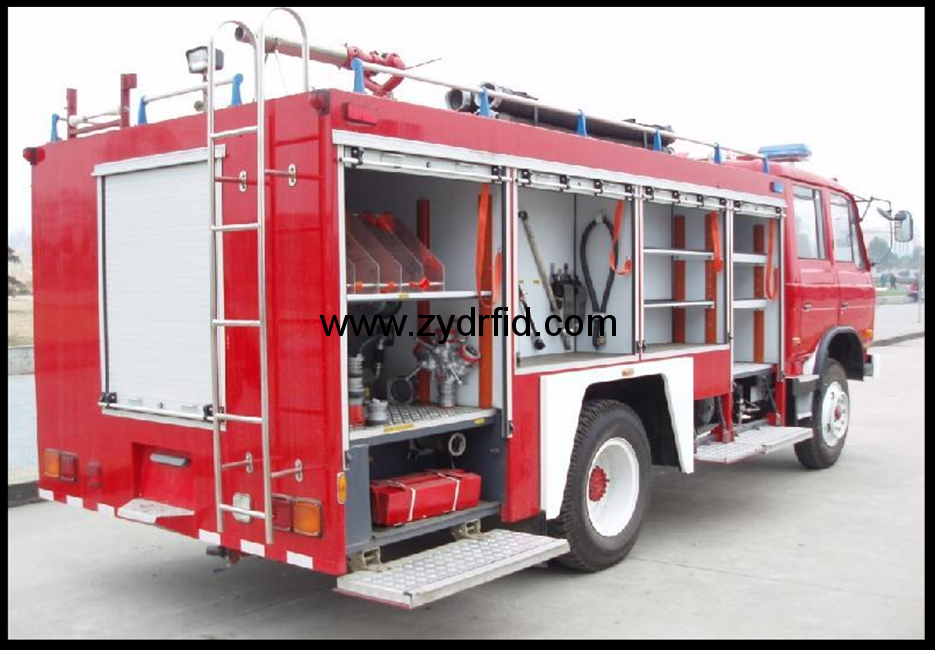 一、每一件消防器具配置一枚有源2.4G标签,在应急出动前,消防人员通过手持2.4G手持机对消防车上的器具进行盘点,消防人员手持2.4G手持机对相应的消防设备进行扫描读取,接收的消防器具上的有源2.4G标签信息与数据库吻合,证明此消防车上的消防器具齐全,确保出车前器具是完整在位的。如消防车上的消防器械为全部在消防车上,可根据丢失的消防器械上的有源2.4G标签的ID在2.4G手持机上输入相对应的ID号,进行查找。