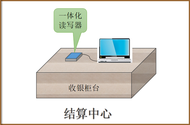 在店面的结算中心将配备一体化读写器,配合工作人员快速完成计价和商品信息在数据库中的实时更新。商品在客户选购完成进行结算时,工作人员将珠宝标签在收银台配置的一体化读写器上读一下,结算计算机显示商品与消费金额,在完成交易后,工作人员在计算机上确认完成销售,中心服务器将该商品在数据库中标记为已售出,同时,柜台RFID设备将不再保持对该设备的监测。