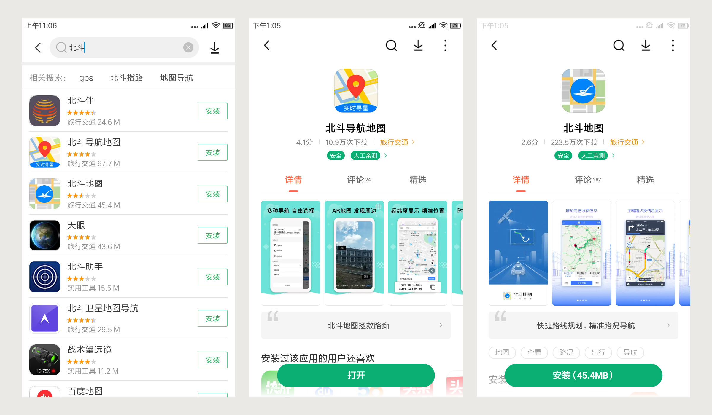 北斗导航的成功组网成为热议话题,许多人也迫切希望在自己手机上安装使用北斗导航,于是打开了应用商店准备下载,但事情却没有想象的那么简单。在应用商店中搜索“北斗”关键词,会出现许多相关的导航 App,其中每一款的下载量都达到了几十万甚至上百万,那么到底哪个才是真正的北斗导航,或者是官方推出的 App 呢?其实答案都不对。