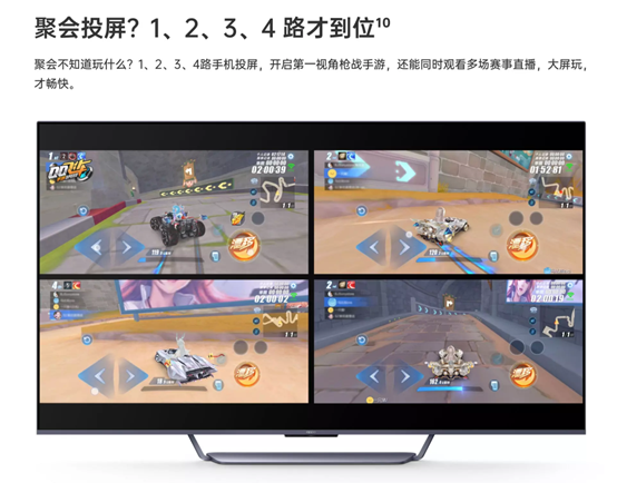 另外,值得一提的是OPPO智能电视S1还能实现四路手机投屏,既将手机画面等分成四块画面,每一块画面都能映射一部手机,进而实现一块大屏、多人共享的体验。