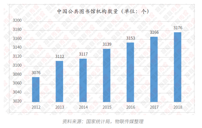 图书馆的量也一样的庞大, 根据国家统计局数据 2018 年底我国公共书馆机构数达到 3176 家; 按照教育部数据2018 年我国共有普通高等学校2663 所 ( 含独立学院 265 所 , 成人高等学校 277 所, 我国高校书馆总数在 3000 家左右, 此外我国还有实物馆藏 10 万件以上的科学院、社科院、部委、军事科研书馆 200 余家。