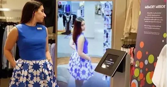 比如消费者试穿了一款红色七分裤,当她将此款红裤在试衣镜前试穿比照时,镜中不仅出现消费者试穿的样子,其一旁的显示器还会展示该款红裤的多种搭配方案:红裤配黑衬衫、配红皮鞋等,消费者可触摸点击查看更详细的方案。