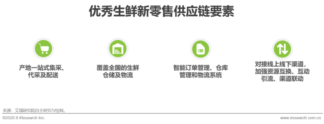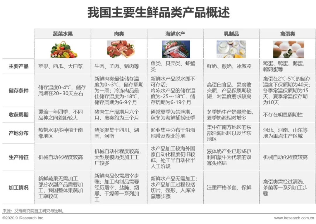 农业作为供应链最源头的供给端,提供了肉禽、蔬菜、水果、海鲜等生鲜产品。生鲜产品具有鲜活易腐、不耐贮运、生产季节性强、消费弹性系数小等特点。随着生鲜供应链的逐渐成熟,生鲜产品的运输季节、地域限制被克服。