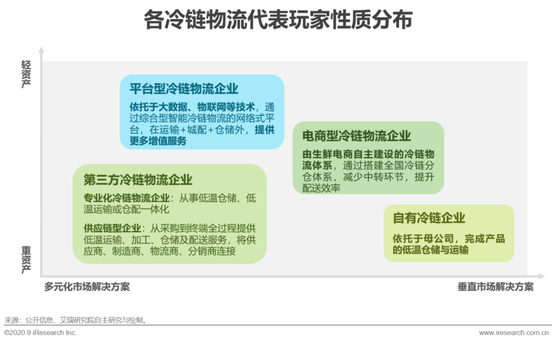 过去,传统型冷链物流企业多具有土地、仓储的资源优势,物流网络运作需要更多资本投入,模式较重。未来冷链物流预计将向“互联网+冷链物流”的冷链资源整合平台上发展,通过逐步完善网络搭建,拓展平台式业务,减少资源的信息不对称。