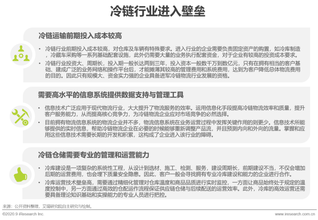 重投入、重营运、高技术要求为冷链物流行业首要行业壁垒