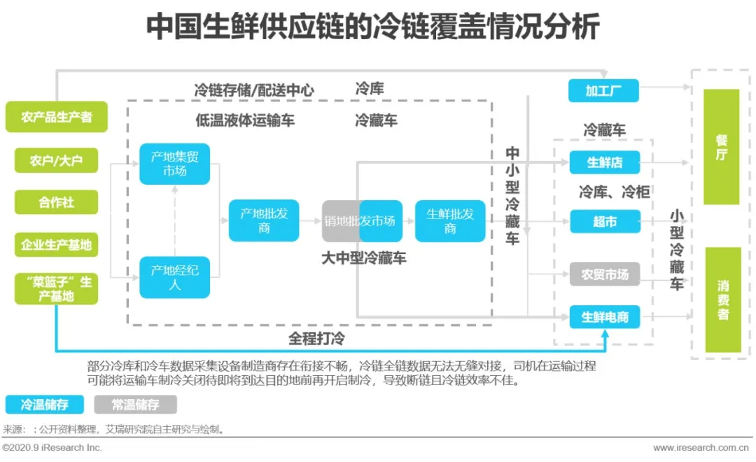 冷链物流是生鲜供应链中游基础设施,过程覆盖等多项环节