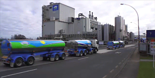 远远地,只见身披蓝色天空和碧绿草地的恒天然奶罐车穿梭驶来。听说奶罐车的外形设计很有讲究!白天车身背景是蓝天和绿草,充分代表新西兰特色。夜晚车身背景转换成月亮和星星,300米开外依然醒目可见!为夜晚行驶的司机们增添一道安全防线。连奶罐车的外观设计都如此细致完善,科学合理,“专业”真是体现在方方面面!